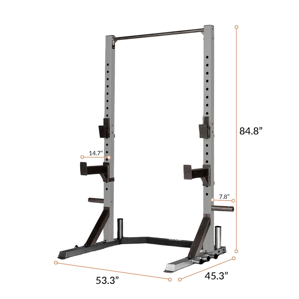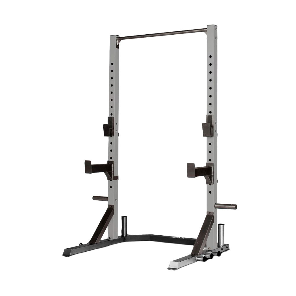 The CAP Strength Deluxe Home Gym Power Rack is engineered for serious lifters building a reliable strength setup at home. Constructed from 12- and 14-gauge alloy steel, it provides a stable foundation for squats, presses and pull-ups. Reinforced gussets enhance structural integrity, while the powder-coated finish improves durability. Integrated plate storage, band posts and safety catches create a versatile training station designed to support progressive overload safely and effectively.