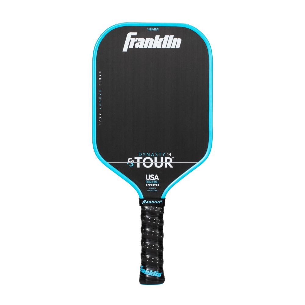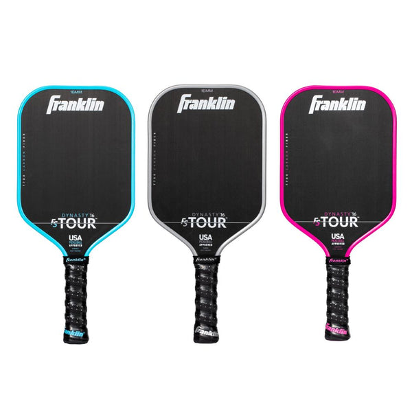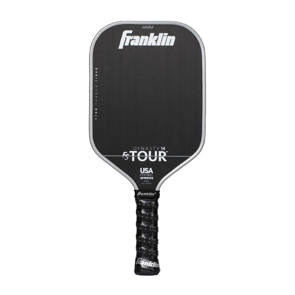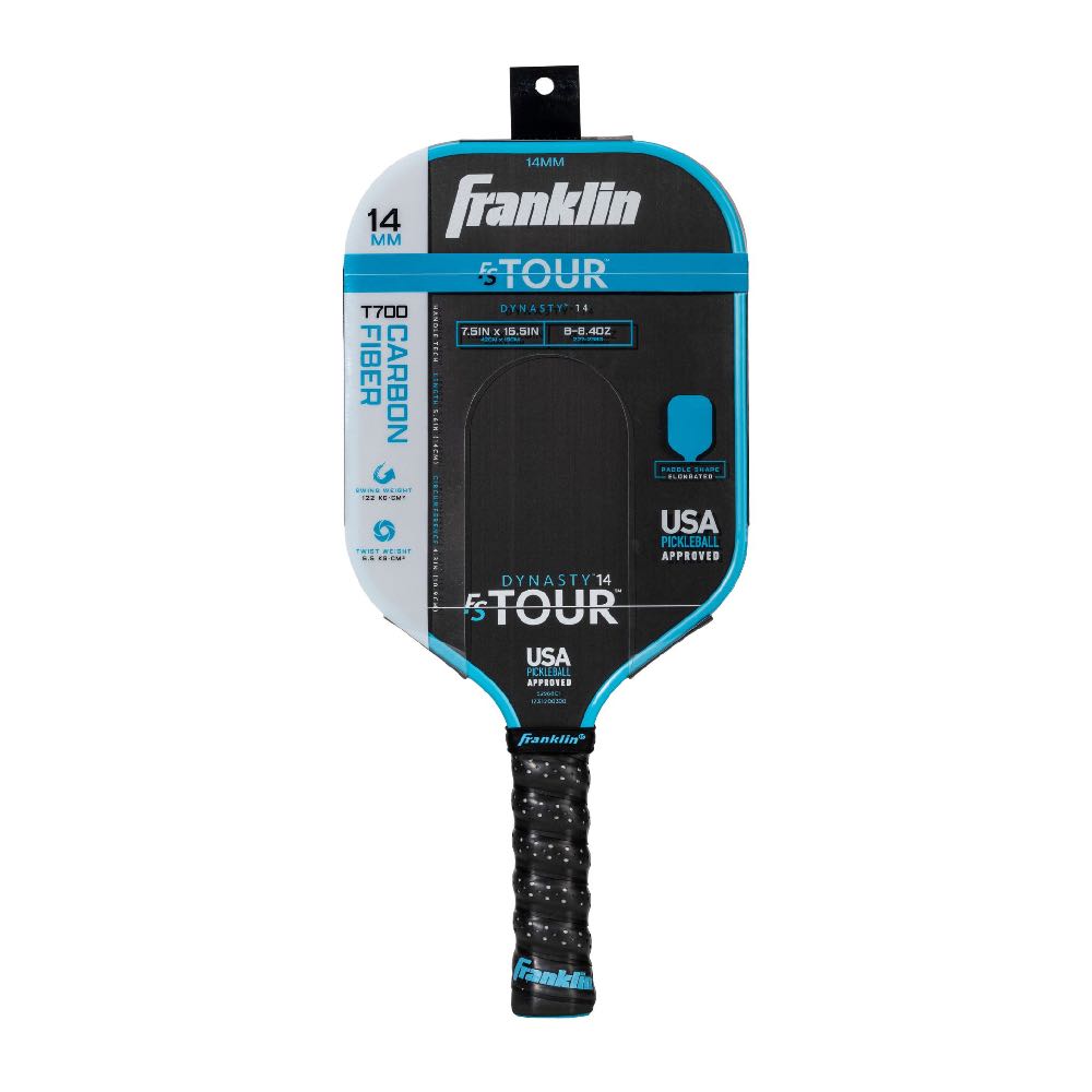 The Franklin FS Tour Dynasty Pickleball Paddle Series is engineered for competitive players seeking the perfect harmony of power, control, and stability. Each paddle features a T700 raw carbon fibre face that enhances spin and touch across the striking surface, while the precision polymer core and foam-injected perimeter expand the sweet spot for cleaner, more consistent contact. Available in both 14mm and 16mm configurations, the Dynasty series uses a unibody carbon frame to improve rigidity and reduce vibration — resulting in pro-level responsiveness across every shot.