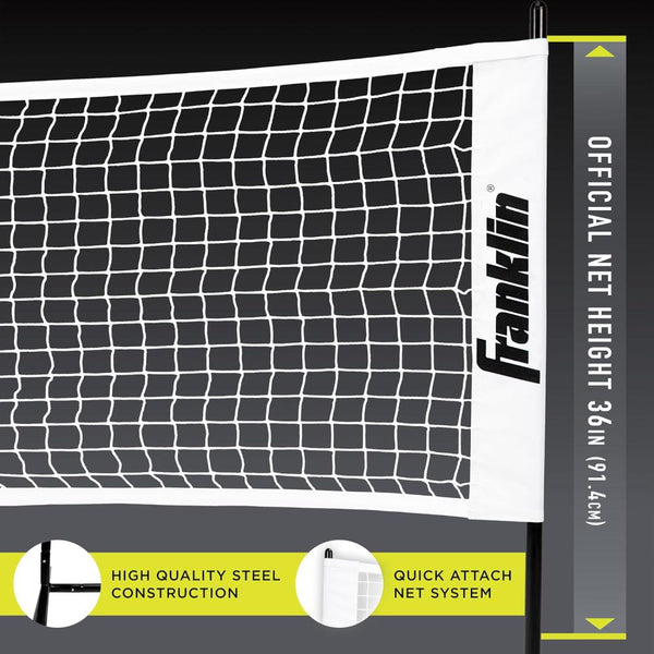 The Franklin Pickleball 2-Player Court Set delivers a complete practice setup designed for small spaces, training, or on-the-go play. The set includes a 10ft-wide steel-frame net, two durable wooden paddles, and two USA Pickleball-approved X-40 pickleballs — everything you need to start playing straight out of the box. Easy to assemble and transport, it’s perfect for beginners learning the game or experienced players fine-tuning their shots. Compact, durable, and travel-ready, this set brings pickleball anywhere.
