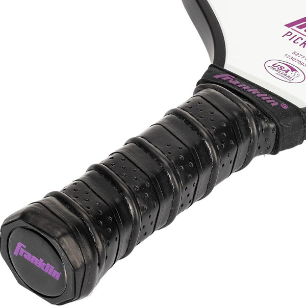 The Franklin Pilot Pickleball Paddle brings tour-grade performance to recreational and competitive play alike. Crafted with a precision-engineered polypropylene honeycomb core, it delivers a powerful yet balanced response through every rally. The MaxGrit composite surface enhances ball spin and touch, while the non-slip comfort grip offers dependable handling in any match condition. Lightweight and tournament-ready, the Pilot combines modern control, finesse, and build quality for a superior on-court experience.