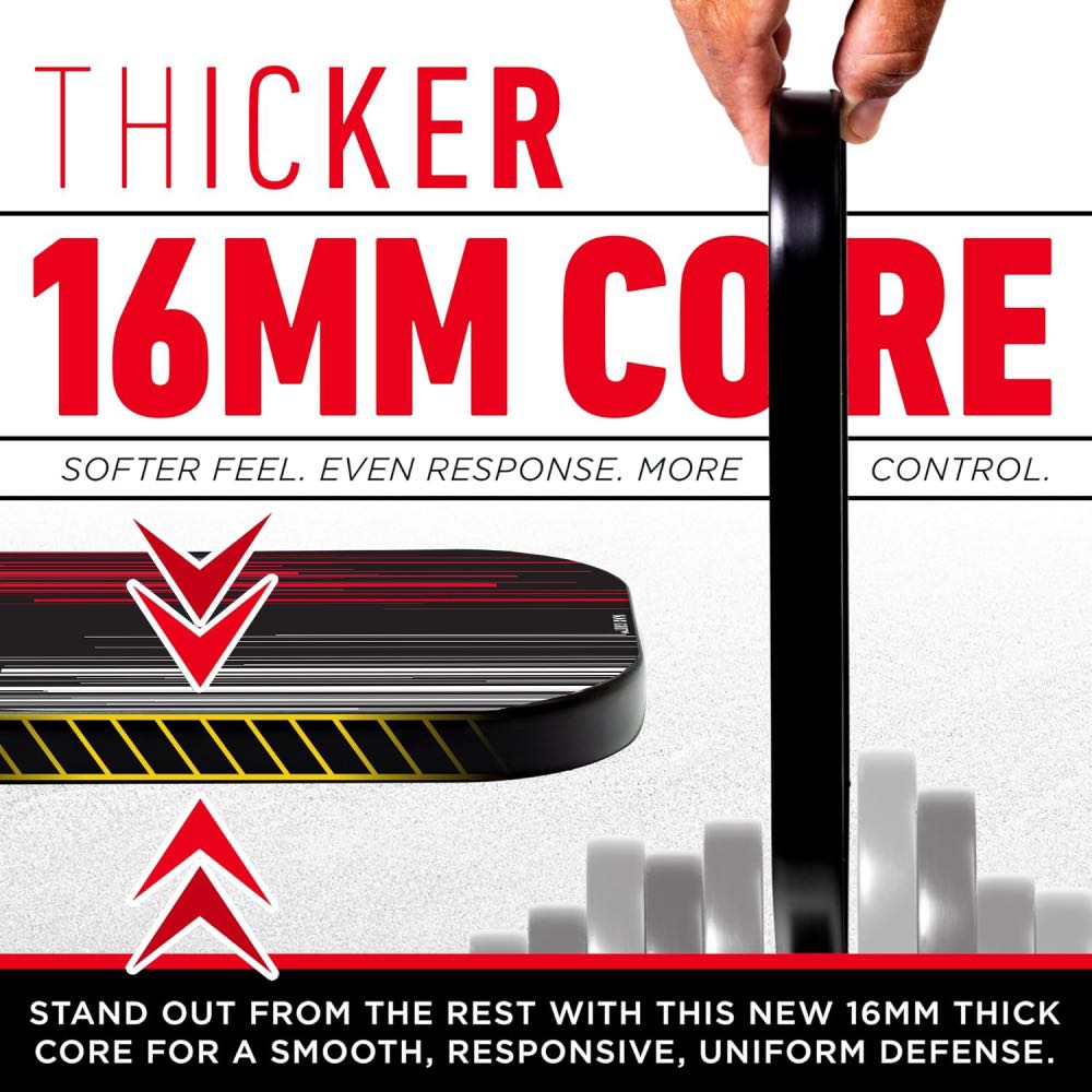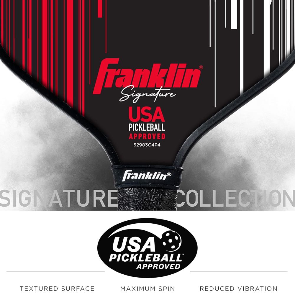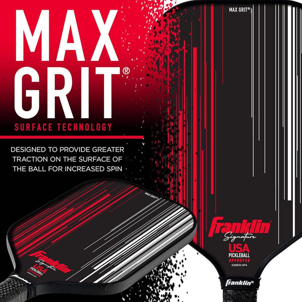 The Franklin Signature Pro Series Pickleball Paddle has been developed by Franklin’s roster of elite athletes for top-tier tournament play. Built around a polypropylene core and finished with Franklin’s MaxGrit textured surface, it enhances spin, control, and vibration dampening for smooth, precise shot-making. The 13mm core delivers a faster, more powerful response, while the 16mm version provides extra stability and control for technical play. Every paddle in the Signature Pro range is USA Pickleball approved and engineered to perform consistently at the highest competitive levels.
