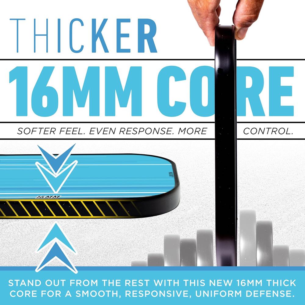The Franklin Signature Pro Series Pickleball Paddle has been developed by Franklin’s roster of elite athletes for top-tier tournament play. Built around a polypropylene core and finished with Franklin’s MaxGrit textured surface, it enhances spin, control, and vibration dampening for smooth, precise shot-making. The 13mm core delivers a faster, more powerful response, while the 16mm version provides extra stability and control for technical play. Every paddle in the Signature Pro range is USA Pickleball approved and engineered to perform consistently at the highest competitive levels.