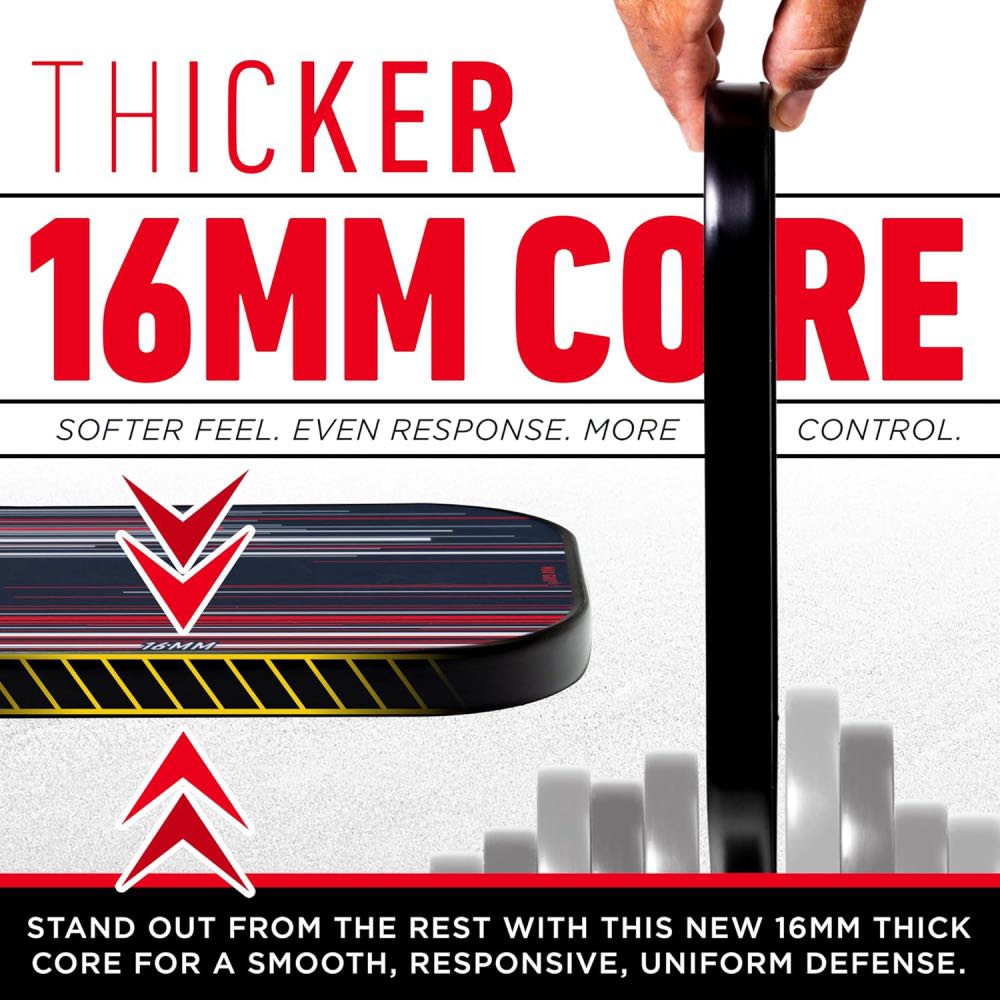 The Franklin Signature Pro Series Pickleball Paddle has been developed by Franklin’s roster of elite athletes for top-tier tournament play. Built around a polypropylene core and finished with Franklin’s MaxGrit textured surface, it enhances spin, control, and vibration dampening for smooth, precise shot-making. The 13mm core delivers a faster, more powerful response, while the 16mm version provides extra stability and control for technical play. Every paddle in the Signature Pro range is USA Pickleball approved and engineered to perform consistently at the highest competitive levels.