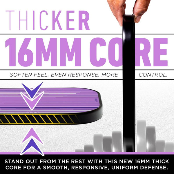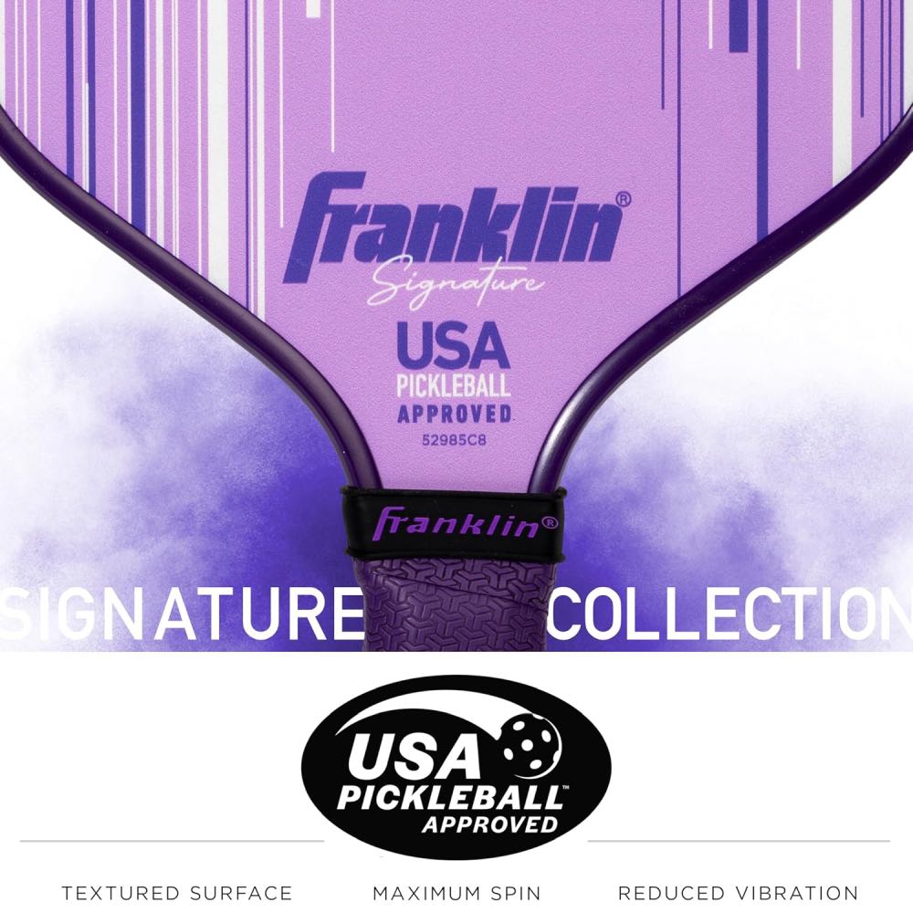 The Franklin Signature Pro Series Pickleball Paddle has been developed by Franklin’s roster of elite athletes for top-tier tournament play. Built around a polypropylene core and finished with Franklin’s MaxGrit textured surface, it enhances spin, control, and vibration dampening for smooth, precise shot-making. The 13mm core delivers a faster, more powerful response, while the 16mm version provides extra stability and control for technical play. Every paddle in the Signature Pro range is USA Pickleball approved and engineered to perform consistently at the highest competitive levels.
