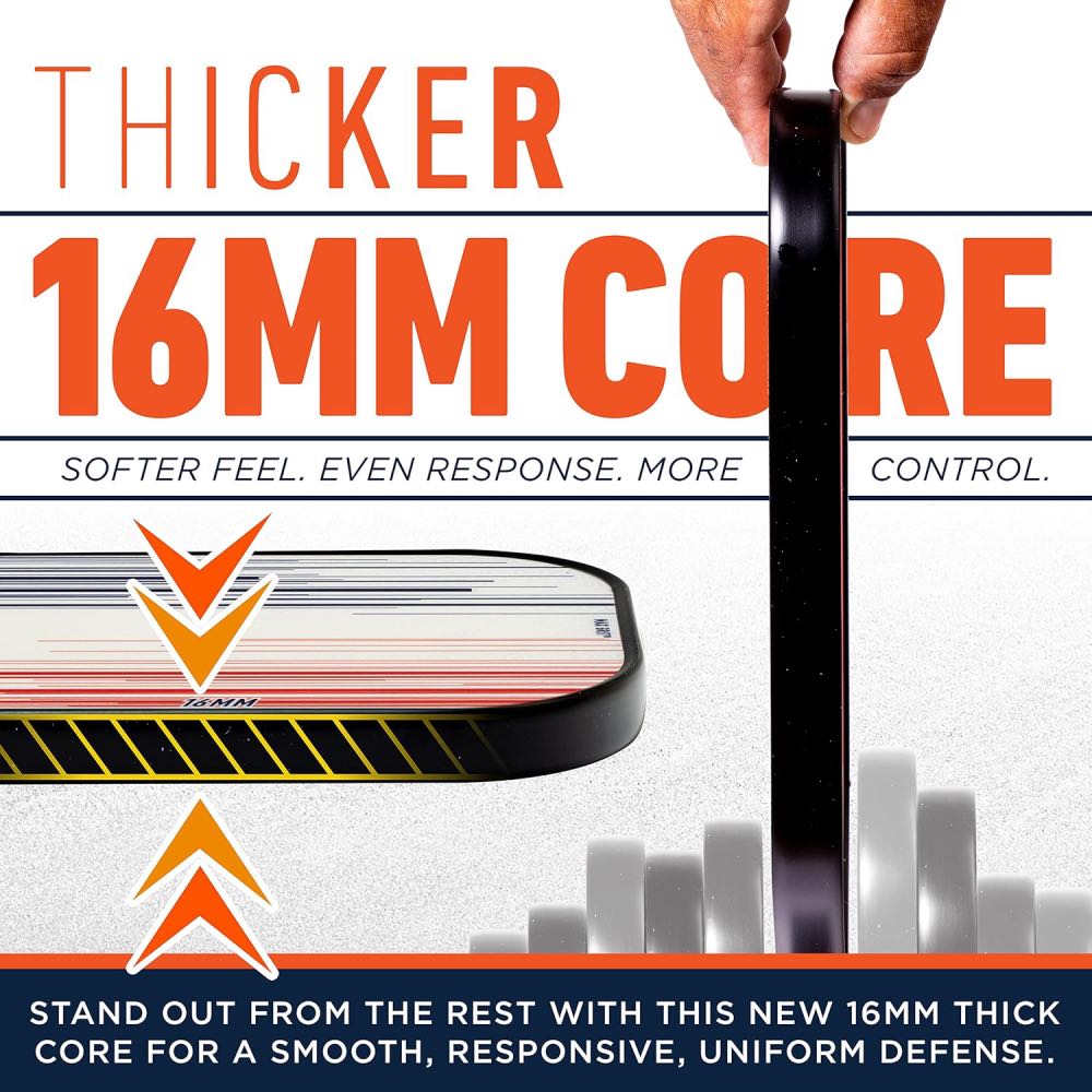 The Franklin Signature Pro Series Pickleball Paddle has been developed by Franklin’s roster of elite athletes for top-tier tournament play. Built around a polypropylene core and finished with Franklin’s MaxGrit textured surface, it enhances spin, control, and vibration dampening for smooth, precise shot-making. The 13mm core delivers a faster, more powerful response, while the 16mm version provides extra stability and control for technical play. Every paddle in the Signature Pro range is USA Pickleball approved and engineered to perform consistently at the highest competitive levels.